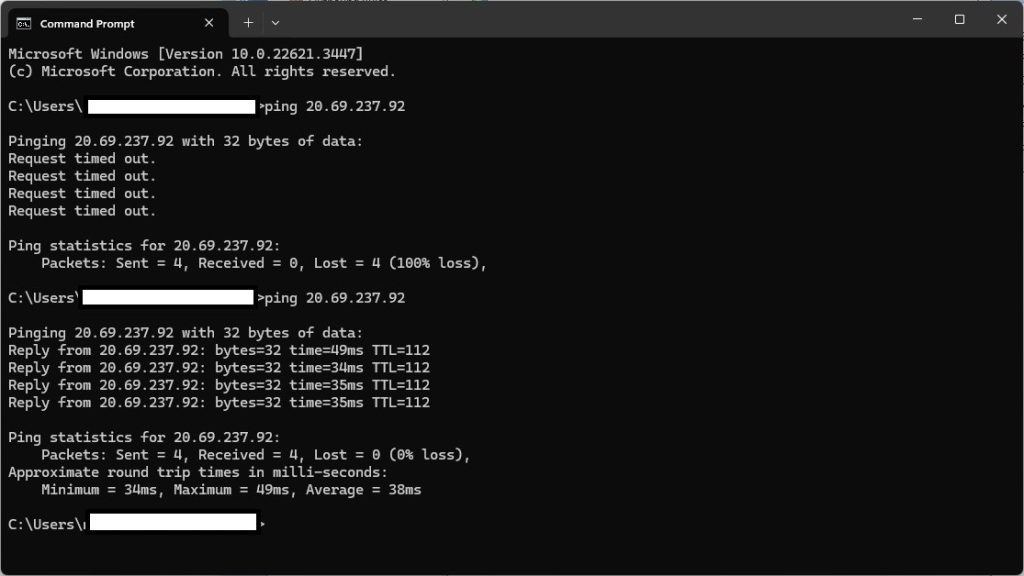 This means that ping (ICMP) requests were now allowed, enabling successful pinging of the machine. Here you can see I tried before disabling the firewall and after.