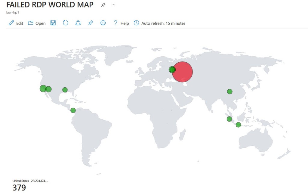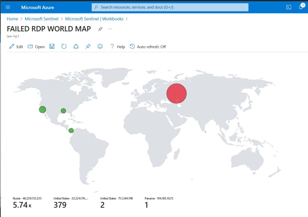 Next, I created a new workbook in Sentinel (The Azure SIEM), using a custom query to pull the failed RDP logs (Credit to aldot311 on GitHub).
